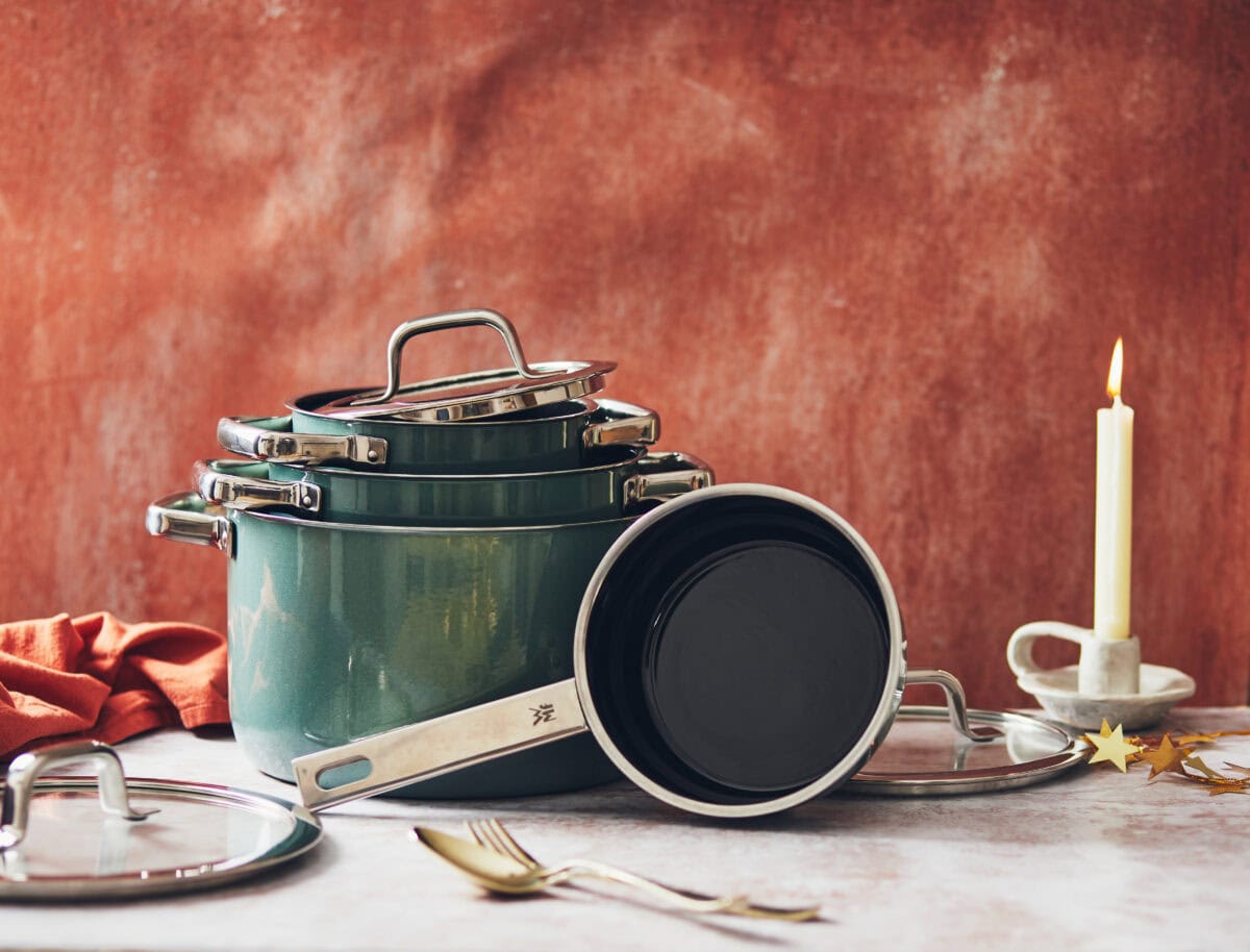 Voor het kerstdiner heb je vaak meerdere pannen tegelijk op het vuur staan. En als je dan even niet op let, zijn de pijnboompitjes zwart, koekt de soep aan of is de saus te ver ingekookt. Om dit te voorkomen zijn fijne pannen een handige hulp. De Fusiontec Mineral Pro pannen van WMF bijvoorbeeld.