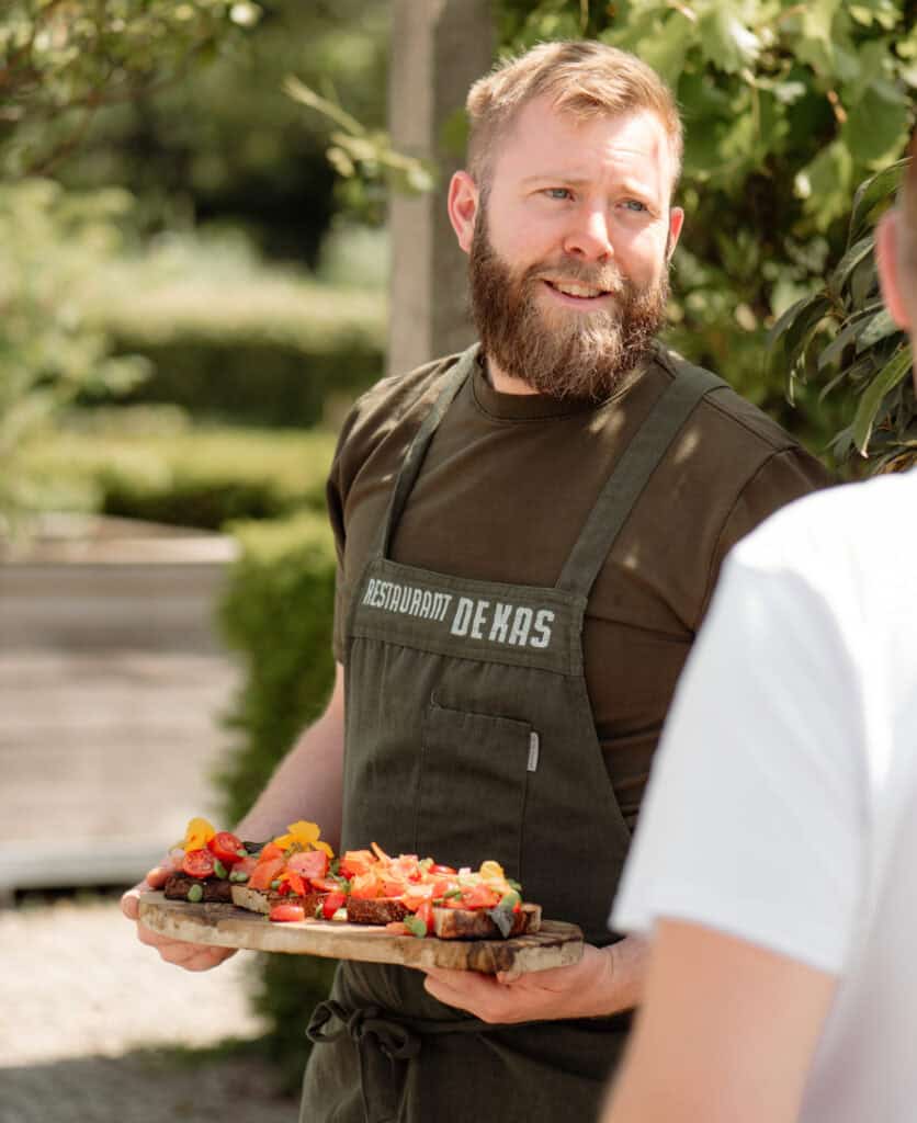 Het menu van het restaurant is seizoensgebonden en afhankelijk van wat er te oogsten valt. “Regelmatig overleggen we vanuit de keuken met Yente en Johan”, vertelt Jos. “Zo bepalen we samen wat er gezaaid wordt door het jaar heen, maar ook wat er op het menu komt te staan. Het is echt een samenwerking tussen de kas, het land en het restaurant.”