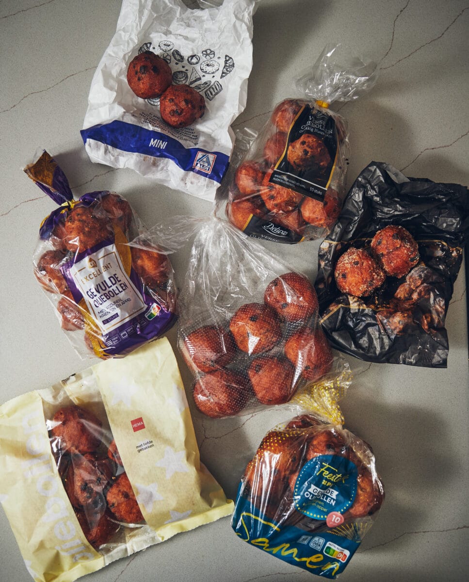 Voor deze grote oliebollentest van 2025 hebben we ons geconcentreerd op gevulde oliebollen, die de redactie – direct na aankoop – blind heeft geproefd. Alle oliebollen zijn hiervoor – volgens de aanwijzingen op de verschillende verpakkingen – kort opgewarmd in de oven.